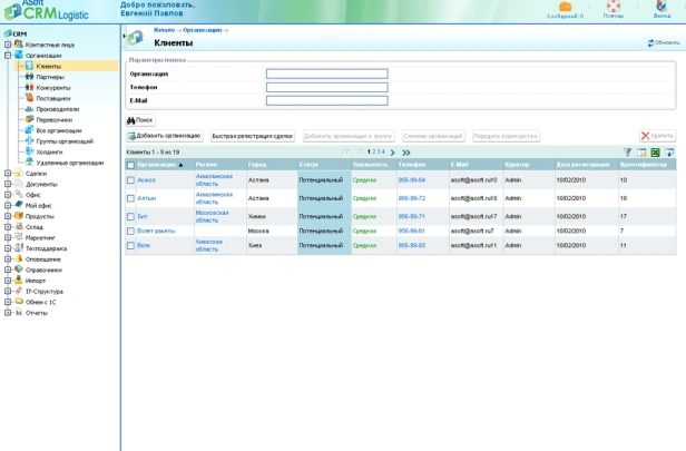 Функции ASoft CRM
