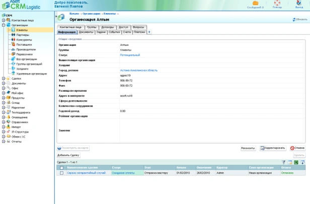 ASoft CRM — система управления взаимоотношениями с клиентами. Ведёт базу контактов и компаний, управляет сделками и задачами. Фиксирует историю коммуникаций, формирует отчёты. Включает модули маркетинга и аналитики. Подходит для отделов продаж B2B и B2C.