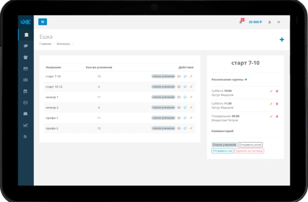 AXKED — CRM для школ, кружков и студий. Учёт учеников, групп, посещений, финансов. Расписание, E-mail и SMS рассылки, методическая база. Аналитика и статистика. Облачный доступ.