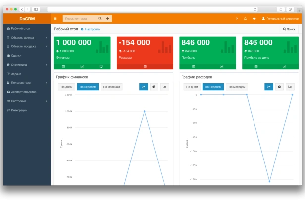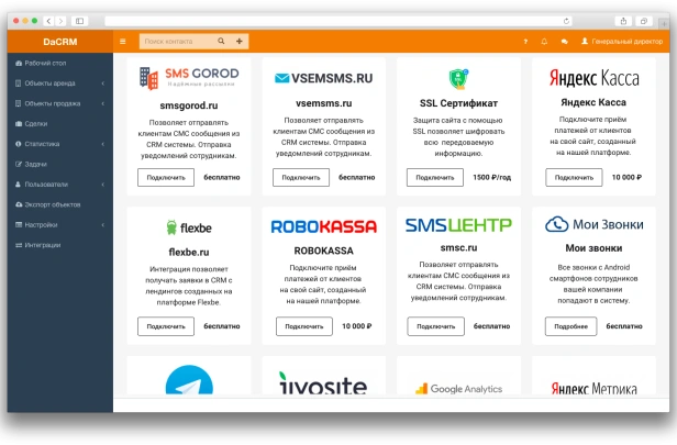 DaCRM — CRM для агентств недвижимости. Воронки продаж, база объектов, автоподбор. XML-фиды на Авито, ЦИАН, Яндекс. Интеграция с телефонией и мессенджерами. В реестре российского ПО.