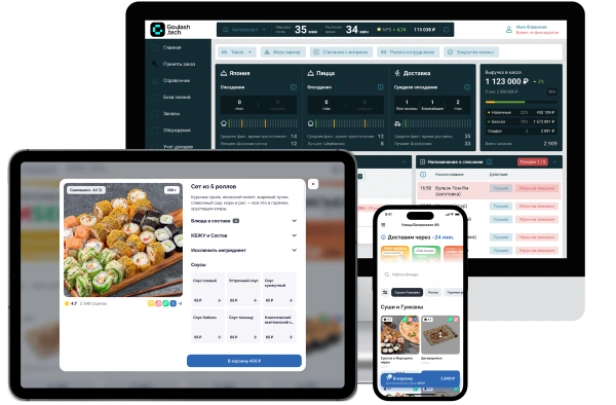 Goulash.Tech — SaaS-платформа для ресторанов доставки. Заказы с сайта, приложения и агрегаторов в одном окне. Управление кухней, курьерами, складом. Сокращение времени доставки на 40%. 700+ заведений, 1 млн+ заказов.