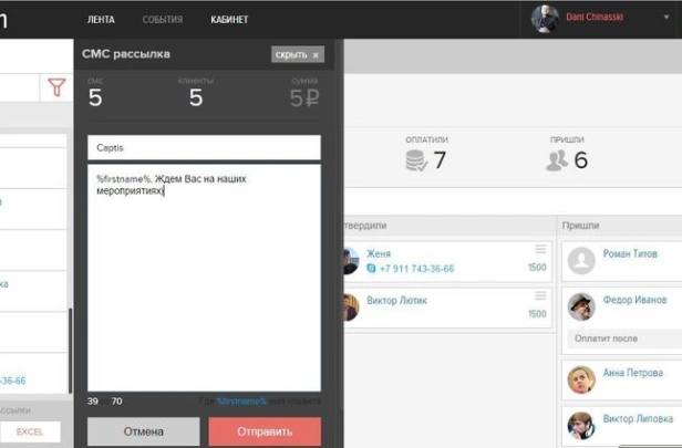Каптис!CRM — система для организаторов мероприятий и обучения. Регистрация участников, продажа билетов, Email и SMS рассылки. Интеграция с Timepad и Робокассой. Формы для сайта, история активности клиентов. Облачный доступ.