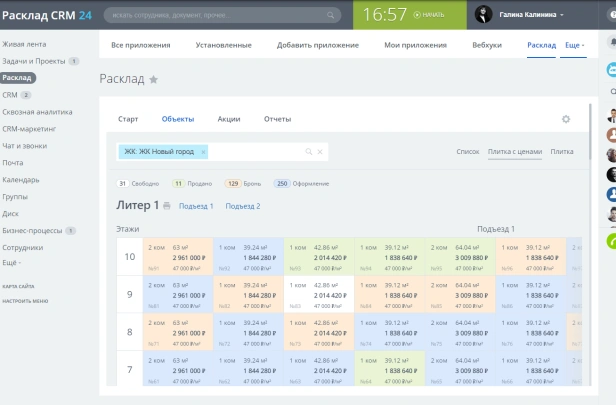 Расклад — приложение для застройщиков на Битрикс24. Шахматка объектов, бронирование, фиды на агрегаторы. Сквозная аналитика рекламы, интеграция со сделками CRM. Всё в одной системе.