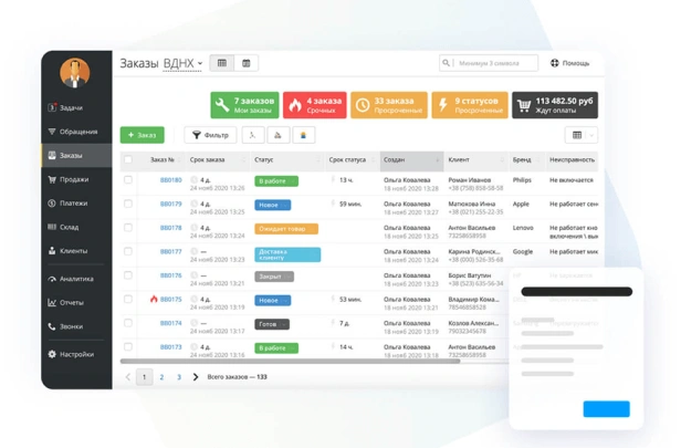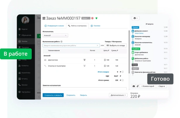 РемОнлайн — система для сервисных центров и мастерских. Учёт заказов, склад запчастей, касса. CRM, воронка продаж, уведомления клиентам. Мобильное приложение, 20+ отчётов. Для ремонта техники и оборудования.