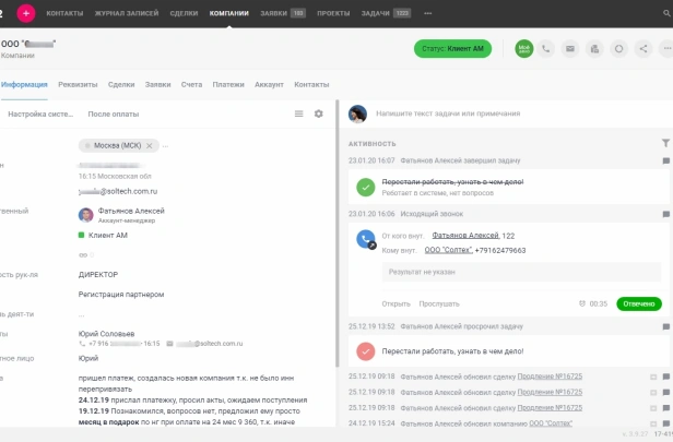 - История взаимодействия с клиентом