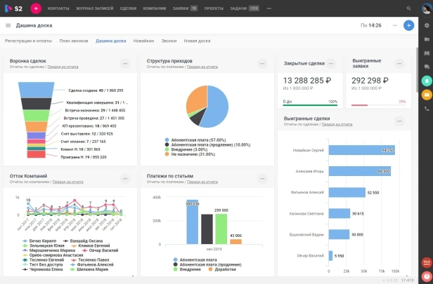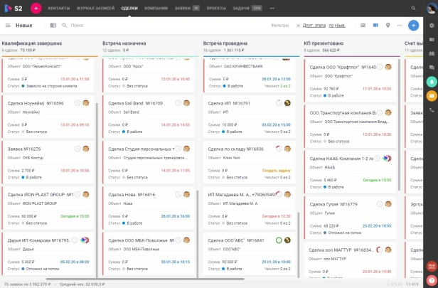 S2 CRM — российская система управления клиентами из реестра отечественного ПО. Подходит для средних и крупных компаний в EdTech, e-commerce, логистике и производстве. Развёртывается на собственных серверах, в облаке или гибридно. Автоматизирует продажи и работу с клиентами, интегрирует данные из разных источников. Стабильно работает с любым объёмом данных, позволяет перейти с зарубежных аналогов.