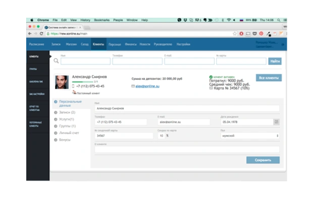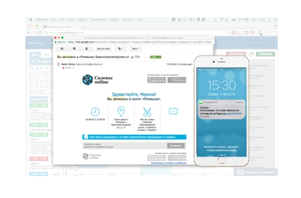 SONLINE — облачная система для салонов красоты. Онлайн-запись через сайты и соцсети, автоматические подтверждения, расчёт зарплат. 200+ модулей, аналитика, программа лояльности. 7500+ компаний в России и Европе.