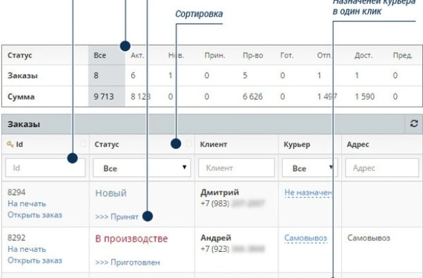 - Управление заказами