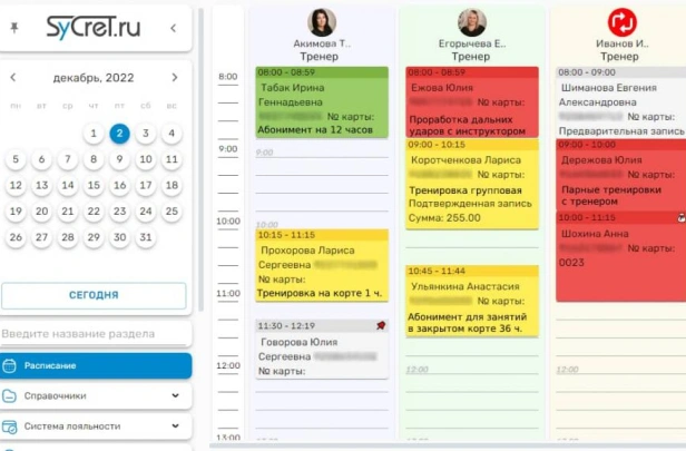 Sycret Tennis — CRM для теннисных клубов и кортов. Запись клиентов, абонементы, расписание тренеров. База клиентов, история визитов, SMS-уведомления. Расчёт зарплаты, аналитика. Мобильное приложение. В реестре отечественного ПО.