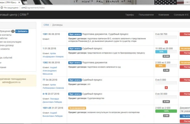 YurCRM — CRM для юристов и адвокатов. Учёт клиентов, судебных дел, сроков и доверенностей. Автогенерация документов по шаблонам, задачи, отчёты. Облачный доступ, ЭДО. Рост прибыли на 25-35%.